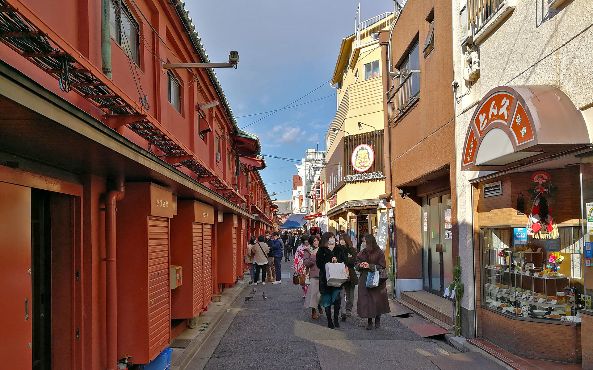 Au cœur d’une rue d’une des nombreuses rues commerçantes d’Asakusa.
